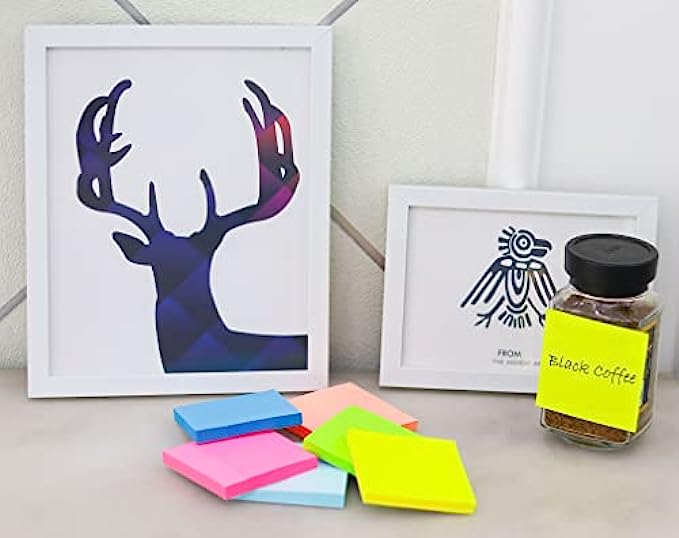 • ✅Super Sticky Notes: Strong adhesive, make sure sticky notes don't fall off, and removes cleanly as well. Sticky note is easy to recycle.