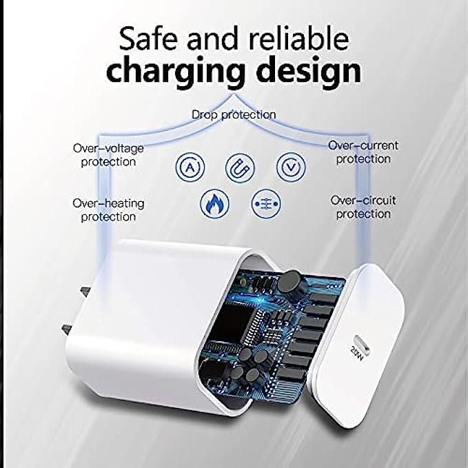 • What You Get:1* fast charging block, 1*6 feet usb c to lightning cable, Welcome guide, 24/7 friendly customer service. Any question or damaged product please do not hesitate to contact us