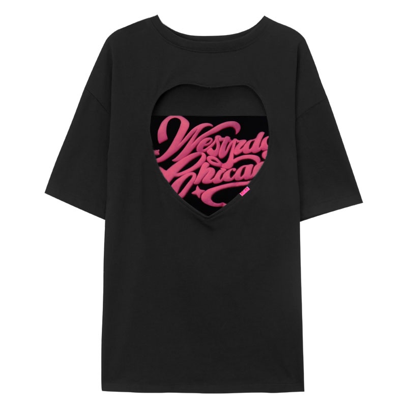 【飯團原創】愛心 長版上衣 短袖上衣 oversize 韓版上衣 抹胸 辣妹上衣 ins風 寬鬆 顯瘦 女生上衣 純棉