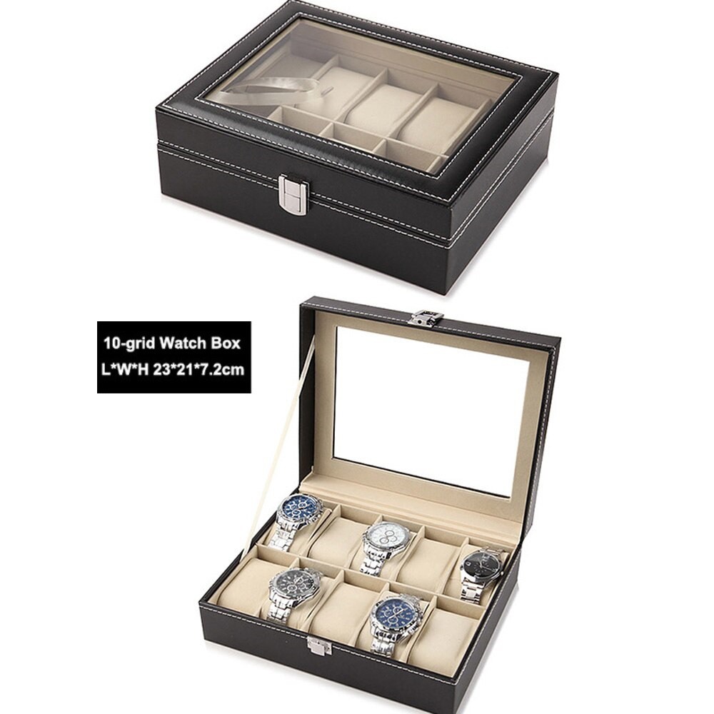 ?CHEAPEST!!!? Watch Box Storage Case - PU Leather Accessories Glass Top Jewelry Organizer 6 10 12 20 Slots Watchbox