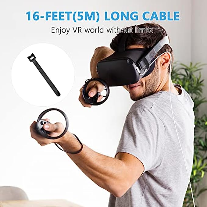 • ✅【16FT Long Durable Link Cable】This 16-feet cable is long enough to reach across an entire play space, providing more freedom of movement than most VR headset cables without worrying about pulling on the cable. If you don't have a fast WiFi network or a PC that can't keep up with the network speed needed for wireless PC VR, this Oculus link cable is very worth buying.