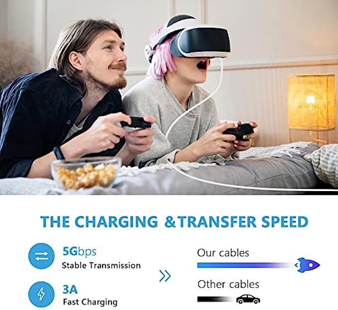 • ✅【USB3.2 and Fast Charging Cable】VR link cable offers 5 Gbps transmission speed and charging with a maximum current of 3A. It offers the best gaming experience while connecting Oculus 2 to steam and twitch stream. This Link Cable allows you to charge your Quest/Quest 2 VR headset while playing. Never worry run out of power while in the middle of your game.