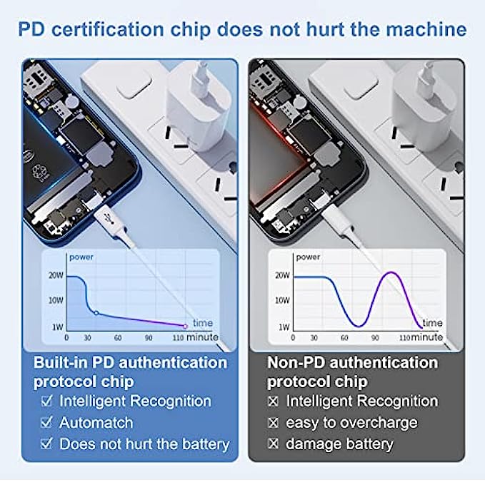 • 【20W USB-C Fast Charger】iPhone Type C Charger loaded with 20W of output power,iPhone 12 gets to 50% charge in <30 minutes, Providing super-fast charging speed for your iPhone device help to enjoy your intelligent life.
