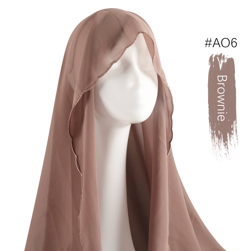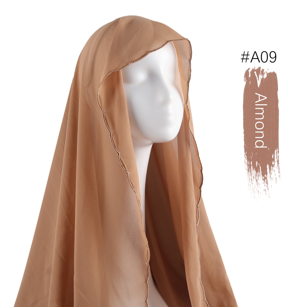 4 edge Shawl Sulam Chiffon Embroidered Lace Scarf Muslim Hijab // Sulam Hijab Shawl Embroidered Scallop Headscarf