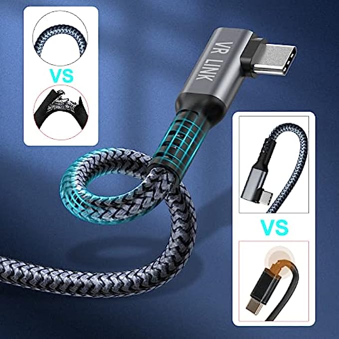 • 【Friendly Design】The USB C-type end buckle is designed with a 90° right angle, which effectively prevents the Oculus quest cable port from breaking during gaming. Easier to plug into VR headset for pc not easily loosened.