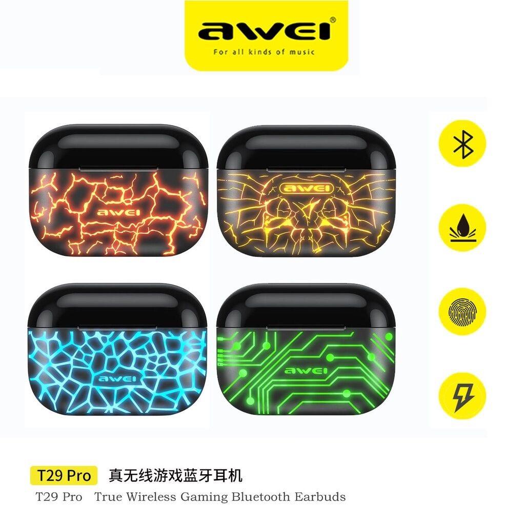 Awei T29 Pro TWS ENC Bluetooth earphone RGB Breathing Lights Bluetooth 5.1 IPX6 Waterproof Wireless Headset