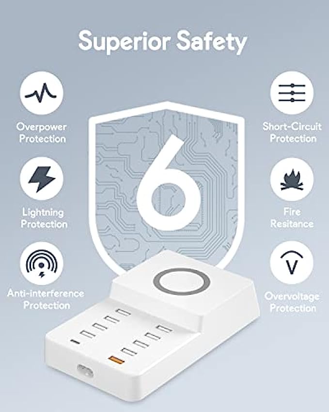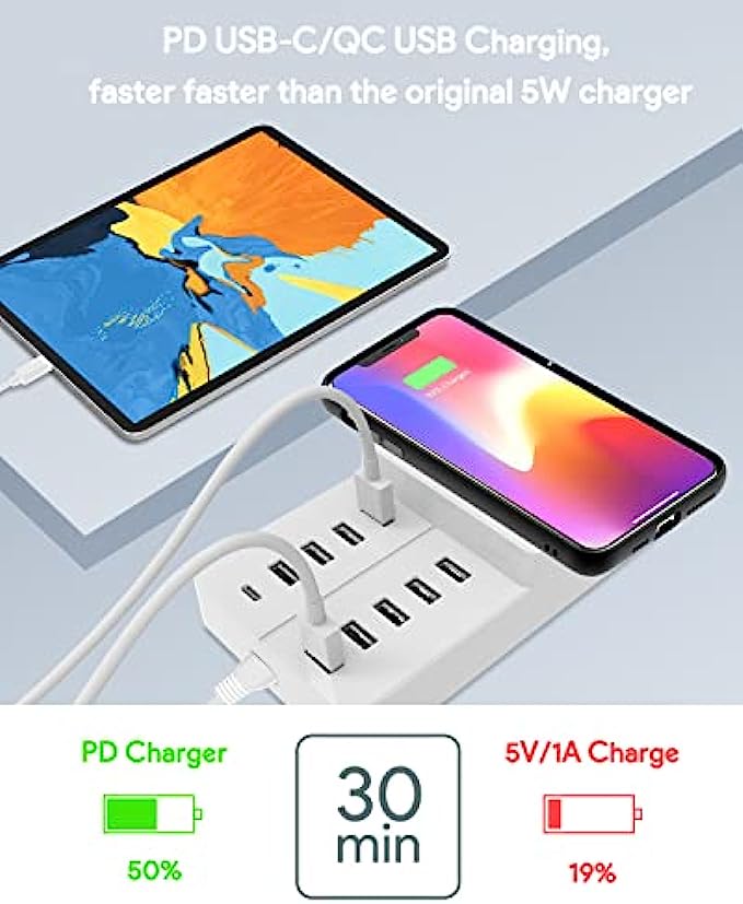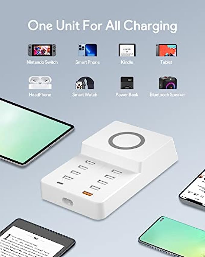 • Smart Fast Charging - Charging Station Manager contains 8 12W USB ports, 1 20WPD port and 1 20WQC port and 1 10W wireless charging. The adaptive smart chip detects and provides the optimal charging current to the connected device to reduce charging time.