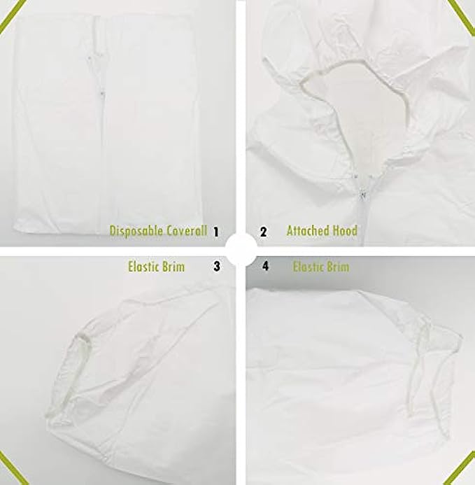 Elastic Imported Hand Wash Only ▷BREATHABLE-Made of high quality no-woven laminated materials.It is a breathable material that helps reduce heat build-up and promote comfortable wear. ▷LIGHTWEIGHT-Lightweigt&elastic design make you easy to work,and never limit your movement. ▷ABSOLUTE PROTECTION- High density materials of coverall fabric offers an inherent barrier to small size particles,include dry particulates and fluid.Anti-static coating on both sides helps reduce static build-up and prevent the risk of static discharge during use. ▷MUTI-PURPOSE USE-It is a versatile garment for a range of jobs including paint spraying, mold treatment, lead and asbestos abatement/remediation, general maintenance/operations, and general cleanup work etc.Not for chemical resistant. ▷ITEM INCLUDED-Pack of 5 coveralls.Foot cover not included.