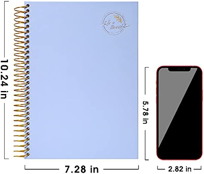 • HARDCOVER JOURNAL--- The college ruled journal is 10.24 Inch X 7.28 Inch(Not including spirals) Some people believe that “No design is the best design” ,the simple pink cover and the gold spiral make the notebook simple and good-looking.