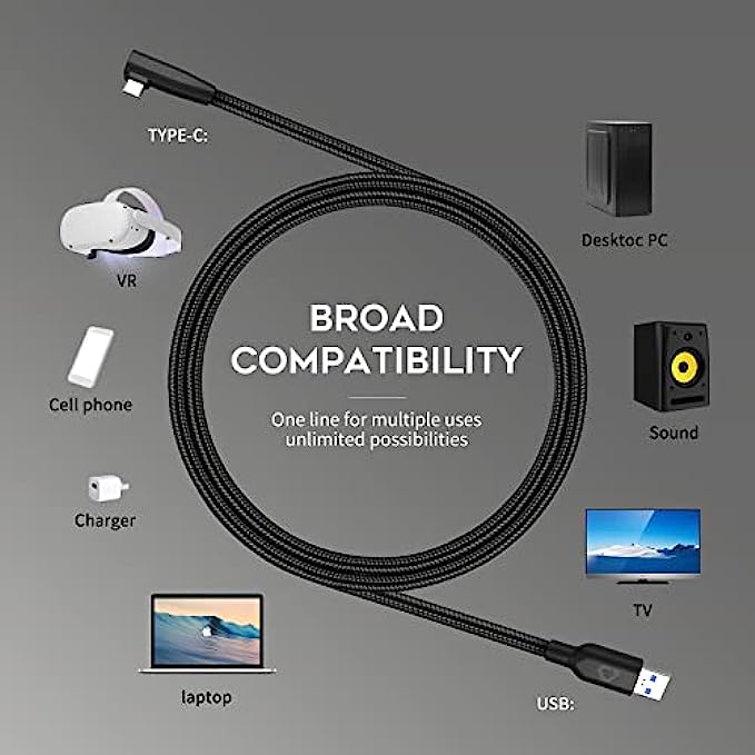 【Wide Compatibility】PC link cable compatible with rift games and all your USB C device like cellphones and game consoles with USB C interface. Compatible with USB 3.0 / USB 3.1 GEN1/USB 3.2 GEN1(Please make sure to plug it into USB 3.0 slot to ensure optimal performance)