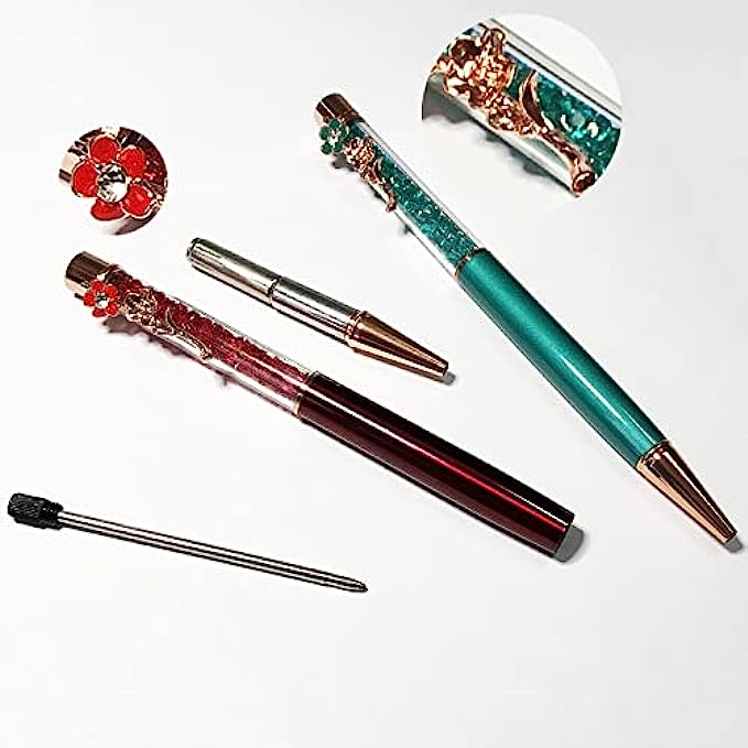 • the floral pen is with a bling dimond on the top of it ,it is cute and fancy pens