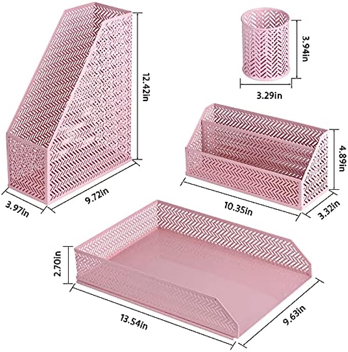 • 【Four Set Office Organziers Combination to Satisfy Your Needs】: You can store all your accessories with cute desktop organizers for office. One pencil cup, Letter Sorter, Magazine Holder and Paper Tray