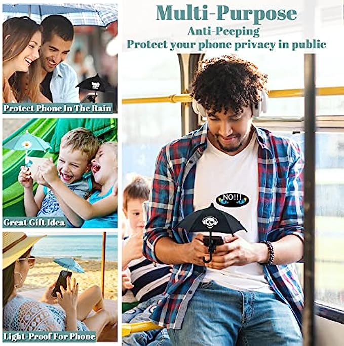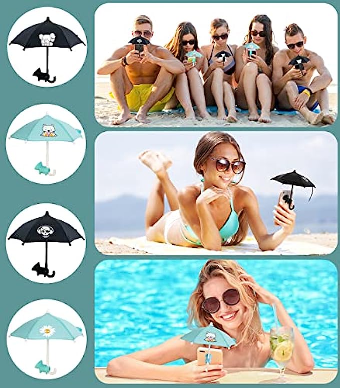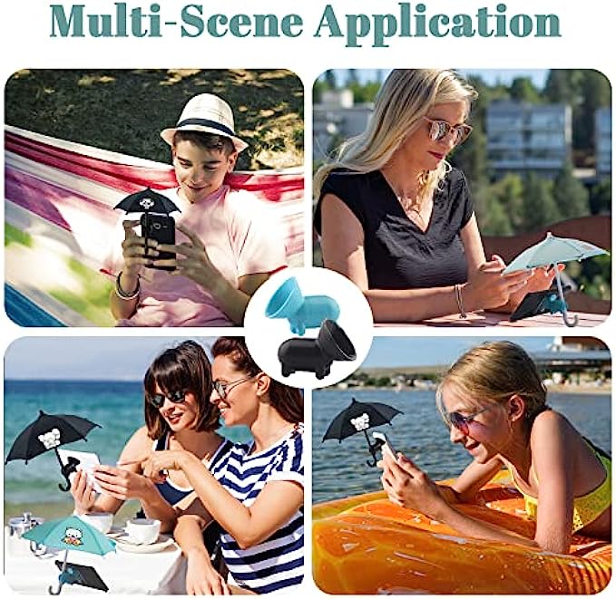 • ?【Exquisite & Portable】 Phone umbrella shade is easy to fold, small size and light weight, easy to put in a pocket or small bag and take it with you, The cute cell phone umbrella can be perfect traveling mate when you are in outdoor activities such as the beach, pool, boat, camping, etc., you will get a lot of attention.