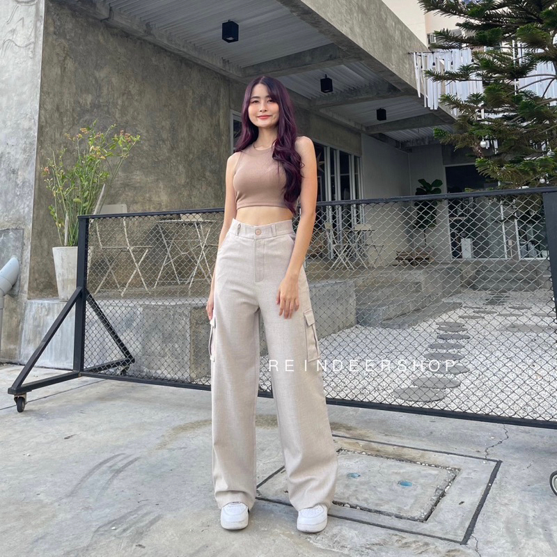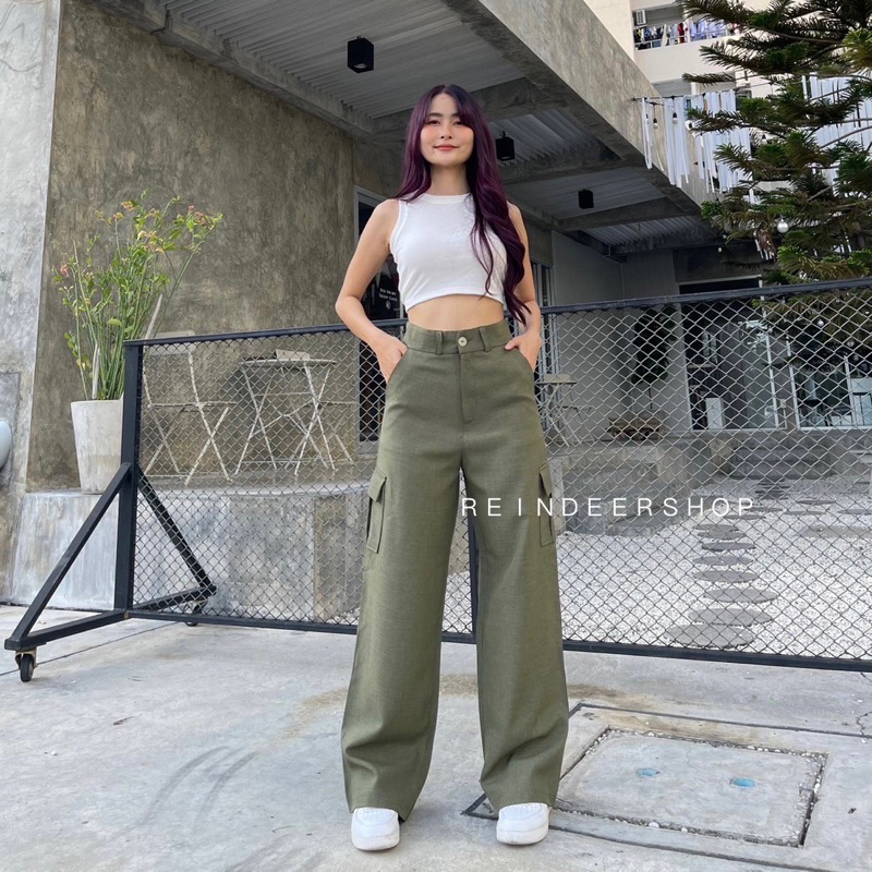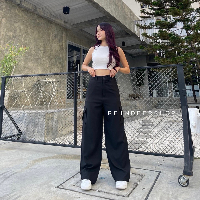 S-3XL High Waisted Cargo Pants Front Button Women