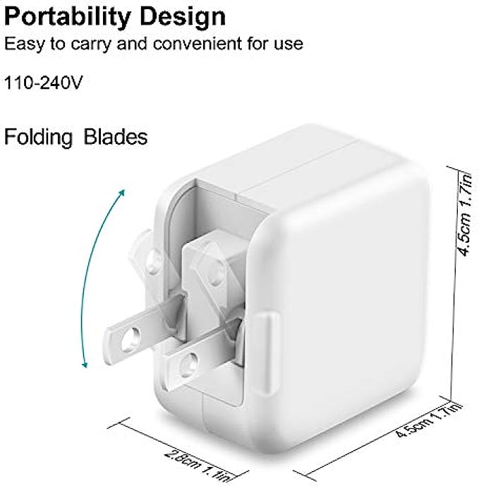• 【USB Fast Charger for iPad iPhone】- iPad iPhone Charger equipped with 12W USB power delivery wall plug, Quick-Charge USB port provides Max 12W output power, charge your device up to 2.5x faster than original 5W charger, charging your iPhone up to 50% in just 45 minutes, saving over 1hrs for you.