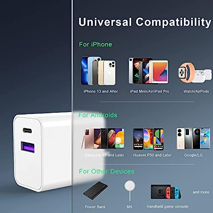 【100% Safe & Compact 】Compatible for iPhone Charger Blocks usually get hot when charging your device at high speed, iPhone SE3 Fast Charging Case with Purple Charging Port gets hot when the temperature rises, Seedato USB C wall charger iPhone Charger brick chip will protect your device from excessive current, don't worry about anything. You can easily take this Seedato iPhone USB C wall charger stand compatible with Apple Watch Charger Series 7 anywhere 【Compatible for PD 3.0 iPhone Charger Block】Seedato USB C wall charger compatible for iPhone Charger Block & USB C wall charger interface supports a power output of 20W. This iPhone 13 pro max fast charger technology of Seedato USB C wall charger can charge your iPhone series at lightning speed.Quick Charge 3.0 technology rapidly charge most device at its fastest possible speed, up to 3A.Seedato iPhone charger needs to be used with the original charging line to achieve the fastest charging speed 【Dual Port Fast Charging】This Seedato USBC block compatible iPhone SE3 charger stand with purple charging port, designed for 2-in-1: Dual port design of USB-C and USB-A Charges at highest speed simultaneously as compatible iPhone Watch charger and iWatch 7 charger. Save charging time, save space, and carry around with Seedato Iphone 14 charger block IPhone charging stand with a purple charging port 【Universal Compatibility】Seedato USB C block compatible for Seedato iPhone Charger Block equipped with a USB-C and USB-A Power Delivery ports can work with type c and USB cable. Seedato USB C wall charger compatible with Apple Watch Charger Series 7 / iPhoneSE3 13 /13 Mini /13 Pro /13 Pro Max /12 /12 Mini /12 Pro /12 Pro Max /iPhone 11 /11 Pro /11 Pro Max /iPhone XR /X /XS /XS Max /iPhone 8 Plus/iWatch 7/6/5/4; Samsung Galaxy S10 /S10e /S9 /S8 /Note 9 /Note 8 and all phones or tablets 【What You Get】LIFETIME-WARRANTY. This Seedato USB C block compatible for iPhone Charger Block /Apple Watch Charger Series 7 interface Dual Port (USB-A and USB-C) Seedato Upgraded iPhone Charging Block/ iphone 14 pro max charger block, Durable USB C wall charger PD Fast Charger cube, Many Months Warranty is included with its purchase as well, 7*24-hours Friendly Customer Service. If you have any questions about this iPhone 13 pro max fast charger, please contact us