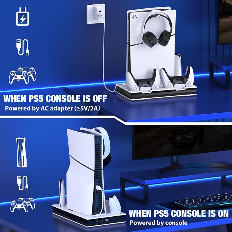 PS5 Slim Multifunctional Cooling Fan Stand Dual Charging Dock Stand Adjustable Cooler Fan For Playstation 5