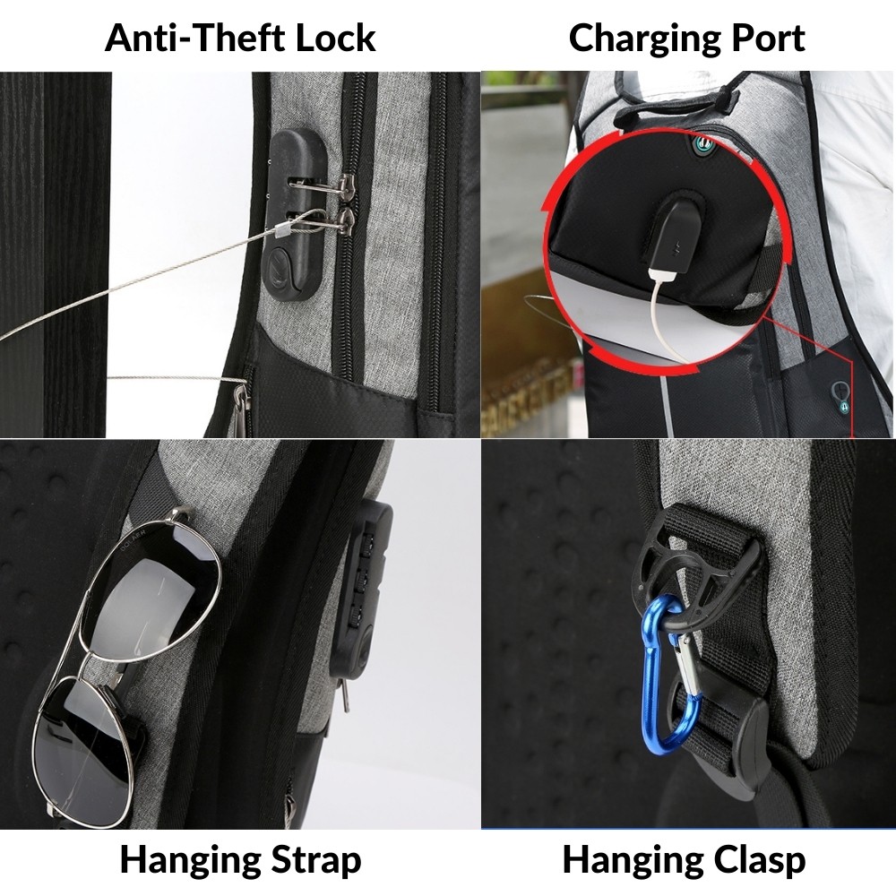 【SG】Multi-Functional Men Business Laptop Backpack Travel Laptop Bag Waterproof USB Charging Port