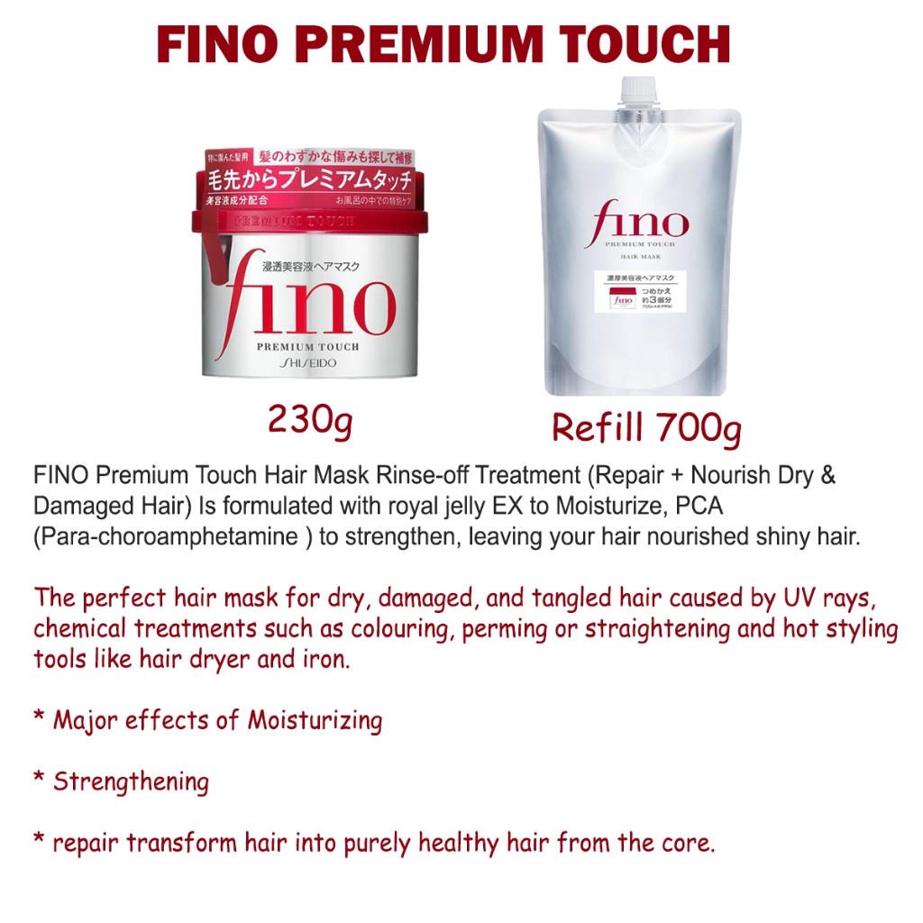 Suitability:for smoother and softer hair Formulation:good Performance:good second time buying because fino hair mask is really very good! smells incredible and makes my hair super soft and smooth after washing. love it!