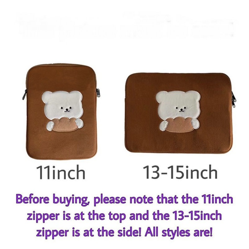 【THICKER】Cute Cartoon Embroidery Laptop Bag Tablet Bag 10/11/13/14/15/15.6 inch Tablet Pouch For Men Women